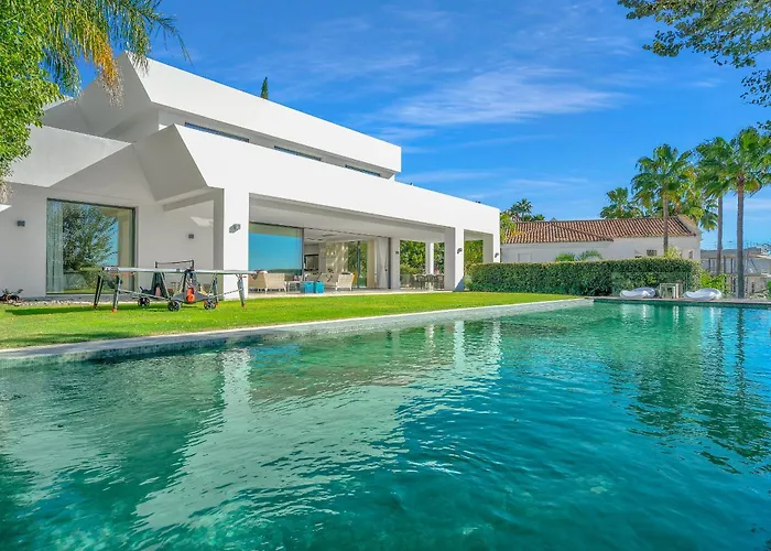 Die 6-Zimmer- Villa Serena By Finest Rentals Estepona liegt rund 2 km von der Iglesia Mayor de la Encarnación entfernt und verfügt über einen privaten Swimmingpool zur Entspannung der Gäste. Diese Villa in Estepona befindet sich in einer Entfernung von ca. 10 Fahrminuten von der Kirche San Pedro und verfügt über eine Terrasse.